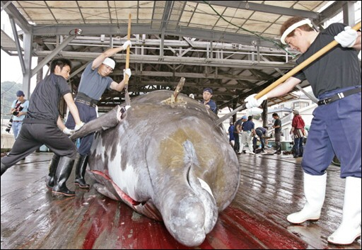 Ce qui serait très ennuyeux, c’est si les baleines étaient impropres à la consommation. On serait obligés de cesser la pêche scientifique (le thon rouge et quelques autres votent pour) ou de changer les normes (pas de pêche, de niveau de radioactivité déclaré bon pour la santé)