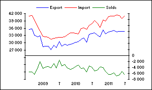 Le déficit mensuel du commerce extérieur de 6,46 mds en juillet porte à 43,9 milliards le solde sur 7 mois. Dégradation de 54% par rapport aux 7 premiers mois 2010. Ces mauvais chiffres sont dans la tendance : le PM Fillon avait dit « médiocre » à la conférence des ambassadeurs.