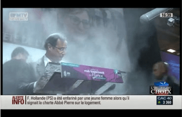 En même temps, il ne faut pas non plus penser qu’aux jeunes sénateurs rebelles, parce que si Cantona a publiquement renoncé à l’ambition présidentielle pour cette fois, si les #occupy de France attendent d’être un peu plus que les 1% du monde ou que la météo s’améliore ou que quelqu’un ait une nouvelle idée d’endroit à aller #occupy devant les caméras plus fun que la Défense, moins humide que le canal Saint Martin et plus garanti sans concert de Yannick Noah que la Bastille, si le parti des abstentionnistes et autres exilés de la démocratie est encore plus indifférent que d’habitude à l’agenda politique, et si même les matchs de foot les plus nuls aux standards gaulois ne dégénèrent ni tendance Chili époque brutale genre années 70, ni tendance Berlin époque très brutale genre années 30, ni tendance Egypte genre (r)éveil brutal en 2012, il faut quand même être un peu attentif aux signaux faibles parce que si personne ne sait trop bien de quel(s) côté(s) viennent les enfarineurs (ni d’ailleurs si la farine était made in France, mais c’est une autre histoire, ou pas), ni pour qui ils roulent, ni de qui ils peuvent être les « idiots utiles » chers aux révolutionnaires classiques, ça fait quand même un peu désordre, limite humour corrézien, quand un supporter tire, même à blanc, même quand ce n’est pas le 14 juillet, sur un élu de la République.