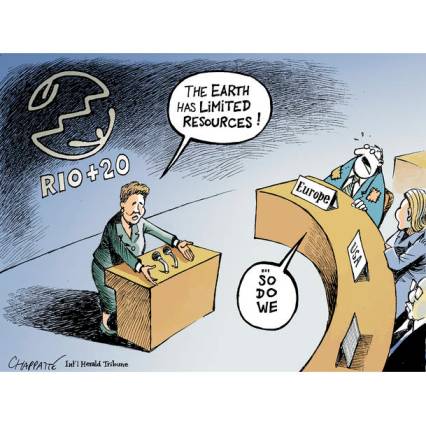 Alors les grands engagements de principe sans vraies garanties de financement, les déclarations en faveur de l’économie verte et le projet d’objectifs du développement durable (sans négliger quand même beaucoup d’échanges, de pédagogie et de communication sur les enjeux) sont les petits coins de bleu dont il faut se contenter dans le ciel chargé de l’hiver brésilien.