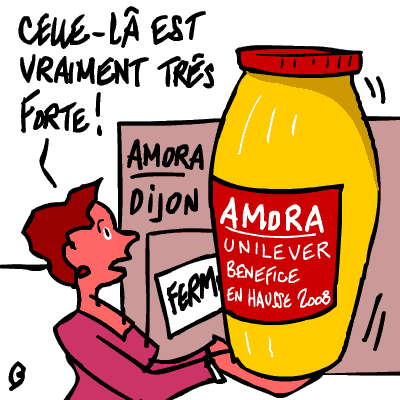 Honni soit qui constaterait qu’Unilever n’est qu’une entreprise européenne bien gérée qui a la chance de pouvoir prendre les virages stratégiques nécessaires et naviguer dans son écosystème sans trop de lapin-crétinisme de dirigeants imposés par le droit du travail réseau de diplômés et autres amitiés fraternelles ou hasards et nécessités des redescentes de fonctions publiques non statutaires, le droit du sang d’actionnaires heureusement nés ou intelligemment mariés ou concubinés ou bien accompagnés par des banques d’affaires aux poches profondes et au neurone au-dessus de la moyenne, ou le droit divin d’un état dont les administrateurs et autres élus -no comment sur le neurone- sont évidemment über-compétents pour prévoir le marché de la margarine bio à 20 ans, le goût des ménagères de moins de 50 ans pour les thés aromatisés après les élections, ou la taille du flacon de shampoing idéal quand la crise bise sera vraiment venue (ceci écrit, le mieux serait de modifier génétiquement les mômes ou de vendre du shampoing qui fait tomber les cheveux, c’est quand même trop bête de claquer du pouvoir d’achat en après-shampoing, en brosses à reluire les poils de tête et en coiffeurs polonais parce que tous les français qui ont pu partir à Londres ou Bruxelles avec leurs clients ont profité du tapis rouge).