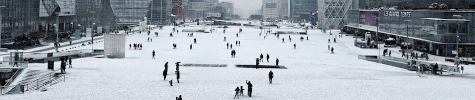 La neige complique la circulation (pas seulement en voiture, la sortie du métro est sportive et RER, trains et avions sont en mode un peu flou), mais comme c’est la crise et que pas mal de gens n’ont pas profité des sports d’hiver, c’est sympa, ce ciel gris et ces flocons.